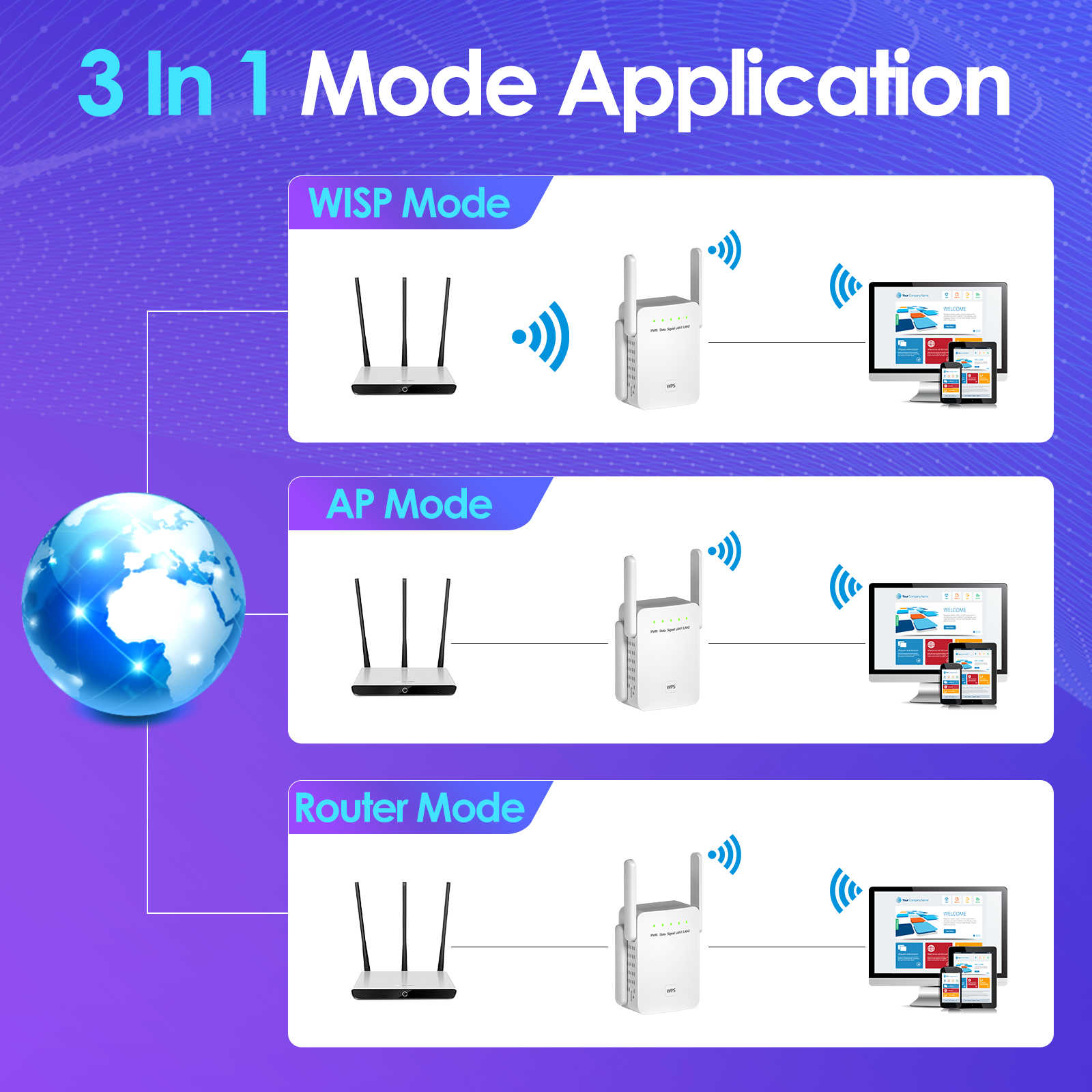 Simply connect the WiFi extender to the router via Web in IOS/Android/PC to enjoy WiFi. supports Router Mode/Repeater Mode/AP Mode/Bridging Mode, which can easily meet different network requirements of users.
